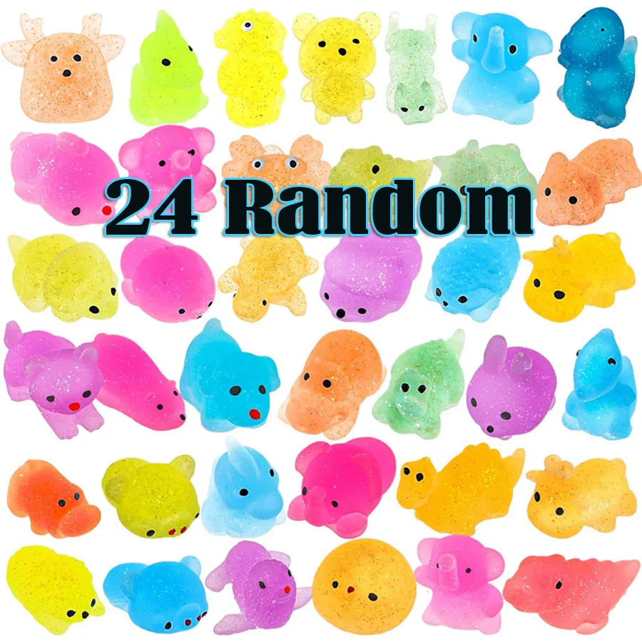 12-36 PCS Set Washable Silicone Multicolor Animals Stretch-Squeeze-Twist Sparkling-Glittering Mochi Squishy Stress-Reliever Toys/Ages: 3-18 + Years Older