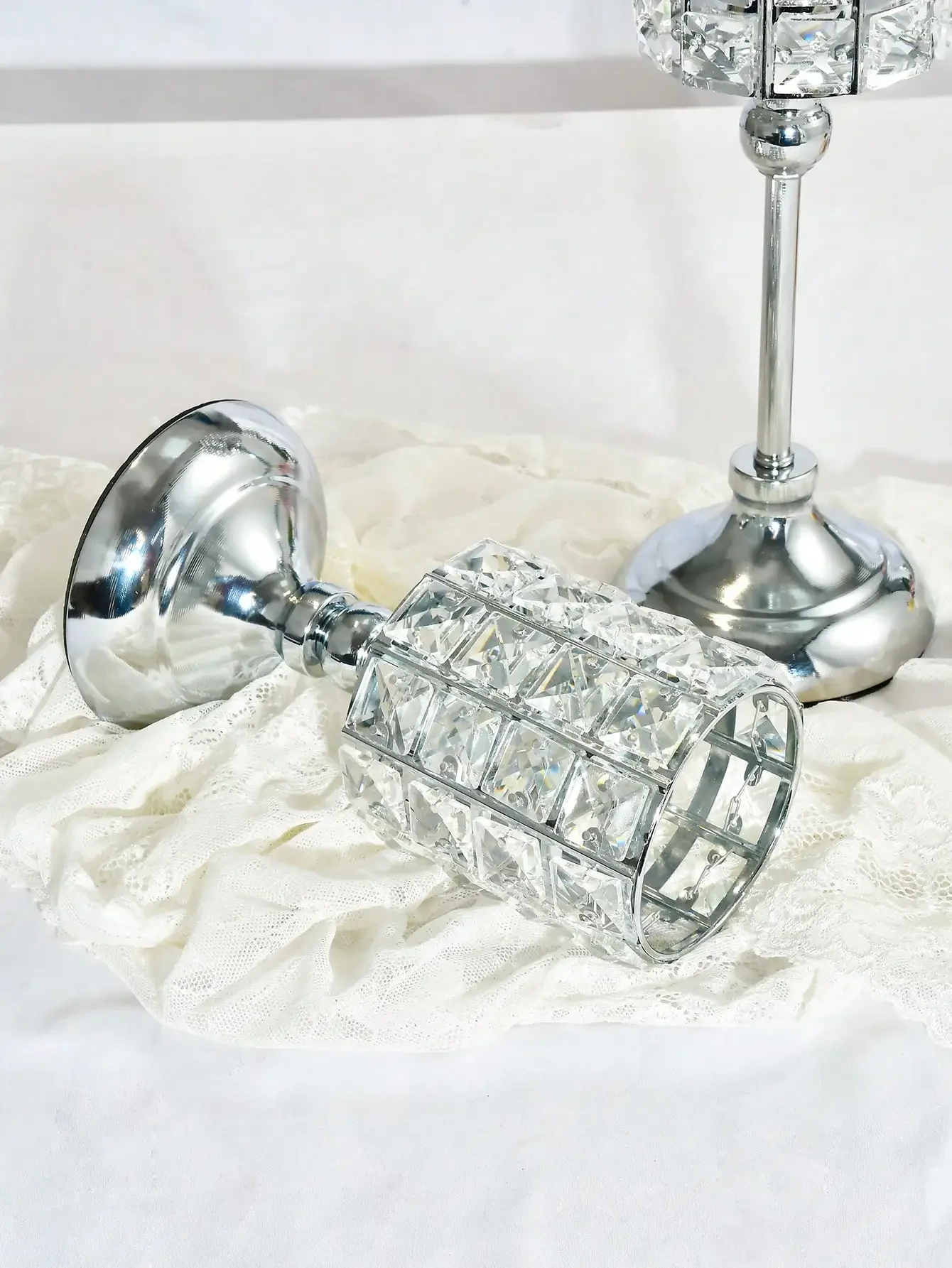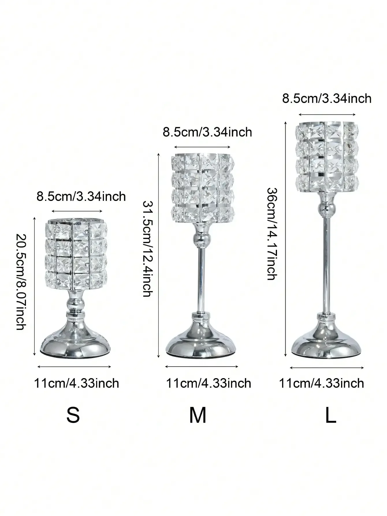 3 PCS Set S-M-L Iron Crystal Tea Light Candlestick Holders/Colors-Gold/Silver/Black