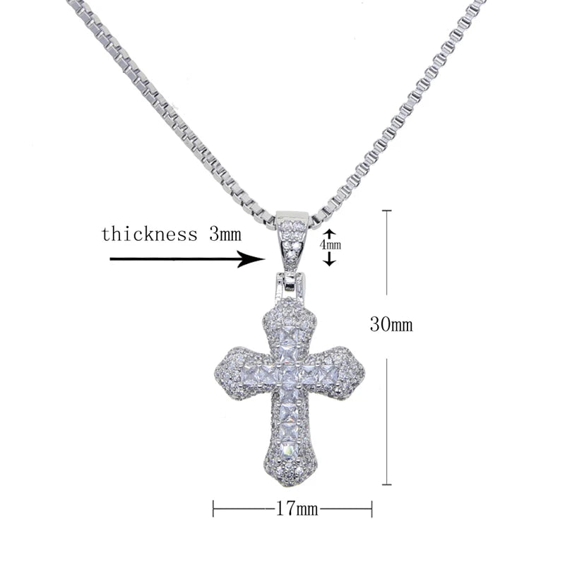 JYZSHINY Adult Unisex Fine Imitation Copper Metal Gold-Plated Clear White-Red Shiny Diamond-Like Cubic Zirconia Gemstones Small Cross Pendant Chain Necklaces