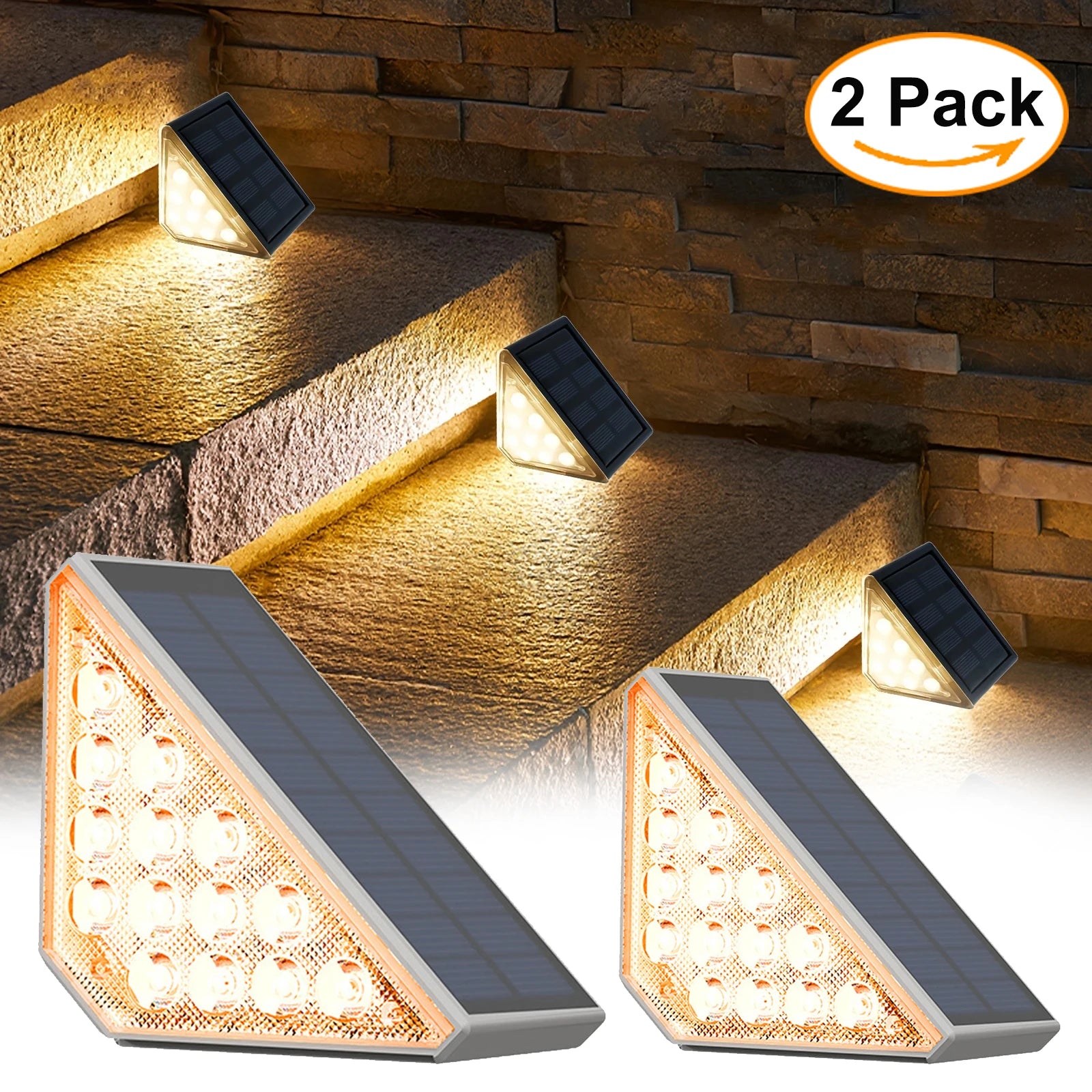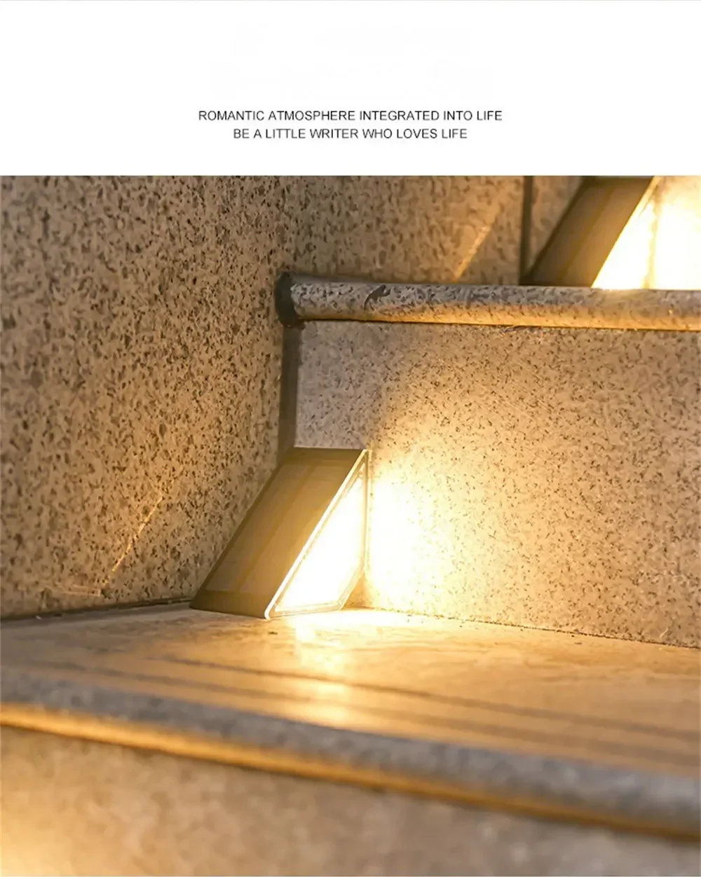 XIWANGFIRE Outdoor Geometric Black-White-Gold Triangle Plastic Body Solar-Powered Warm White LED Waterproof Stair Lights