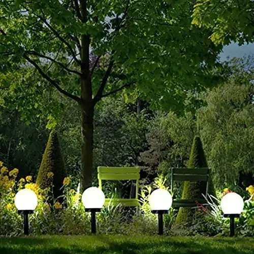 ZHIYU Modern Waterproof Automatic Light Control Mode Power-Saving Solar-Powered Round Ball Shaped Plastic Warm White LED Walkway Black Base Lamps/LED Incandescent Bulbs Included