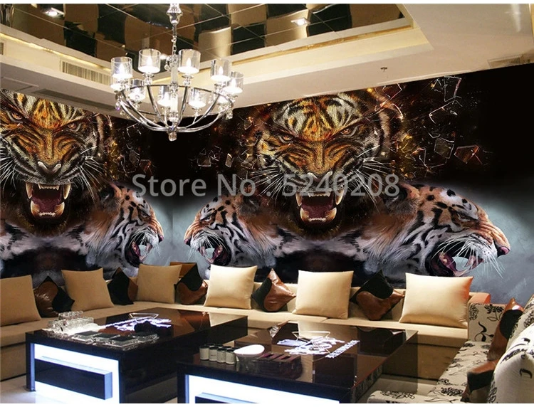 Kids Custom Any Size Waterproof Canvas Peel-N-Stick Plastic Removable 3D Tiger Heads Roaring Silk Cloth Wallpaper