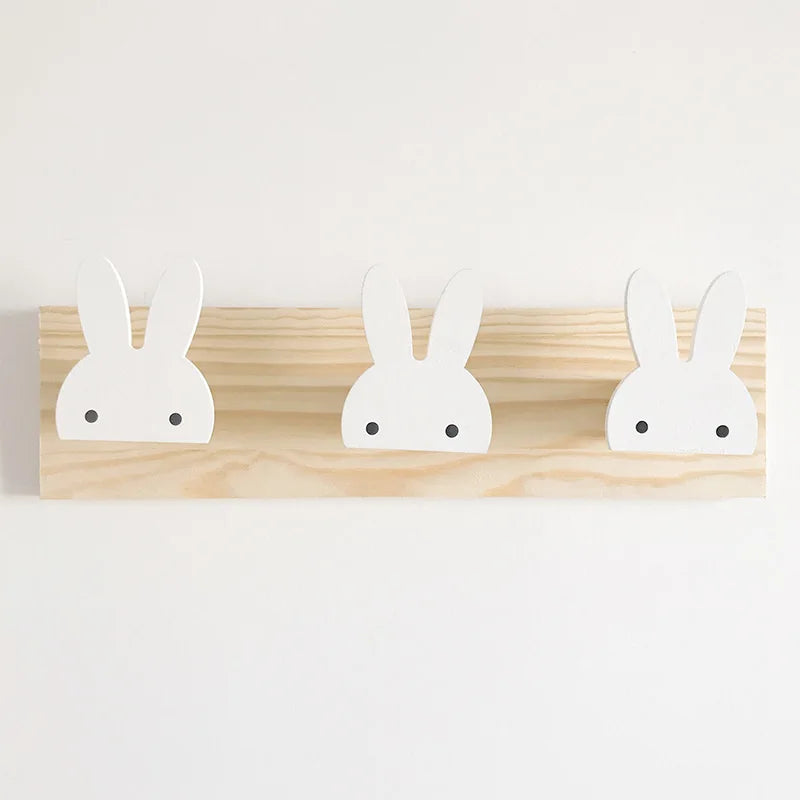 Girls Wood Cartoon Animal Rabbits-Ice Cream-Fairies 3 Hooks Wall Mounted Coat Rack