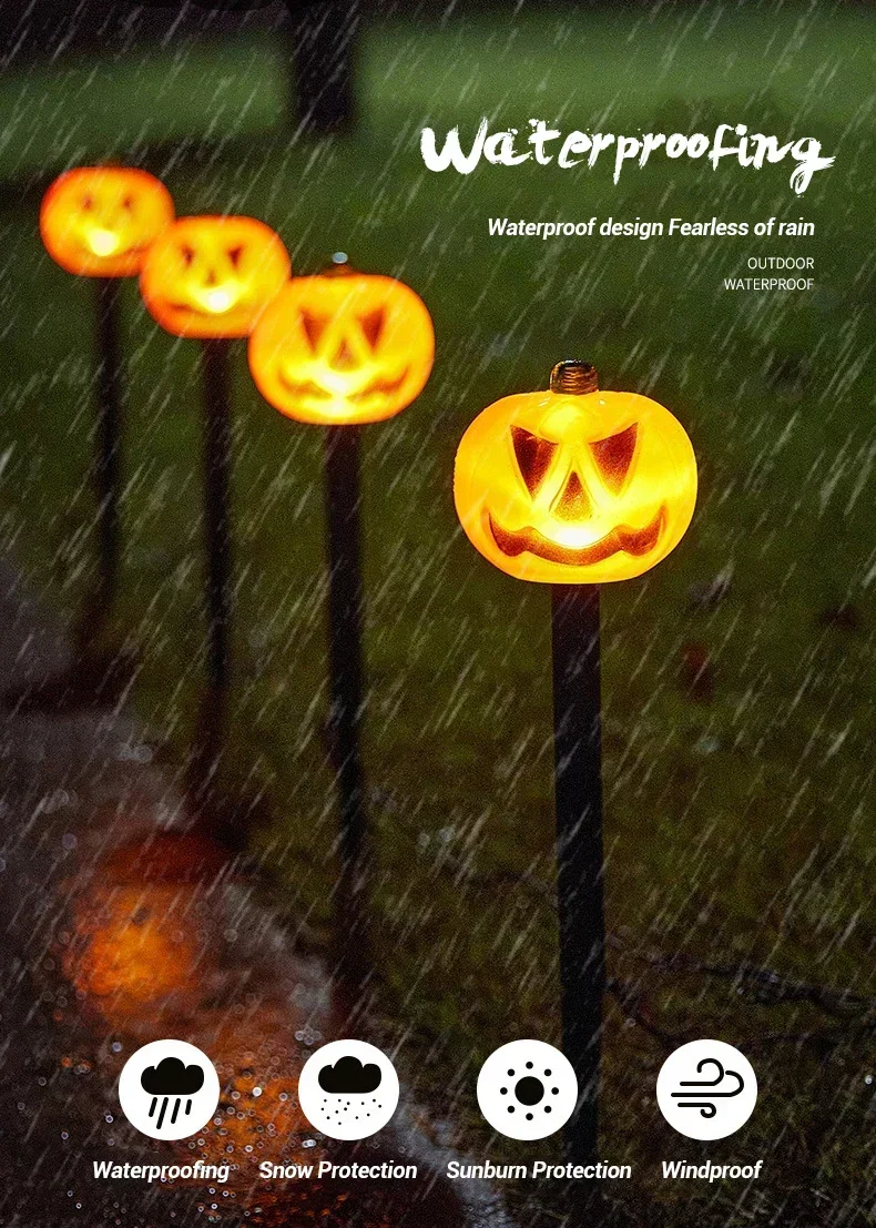 XIWANGFIRE Outdoor Waterproof Warm White LED Bulbs Small-Big Halloween White Ghost-Orange Pumpkin Black Triangle Shaped Eyes-Nose-Mouth Pumpkin Shaped Lantern Solar-Powered Landscape Pathway Lights/Colors-Orange/Black/White/Multicolor