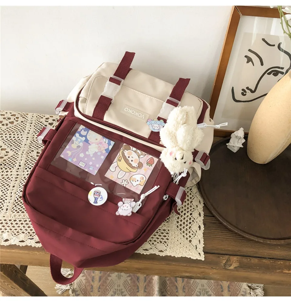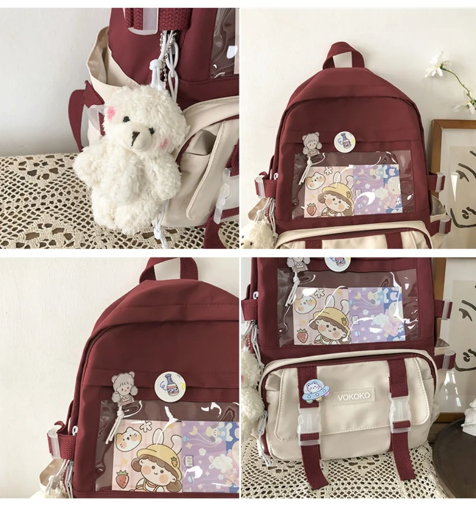 VONMONAN Women Waterproof Pink Nylon Fabric Clear Transparent Window Kawaii Cute Animal Design Zippers External Pockets Polyester Lining Single Compartment Shoulder Straps-Handle School Backpacks/Colors-Pink/Red/Green