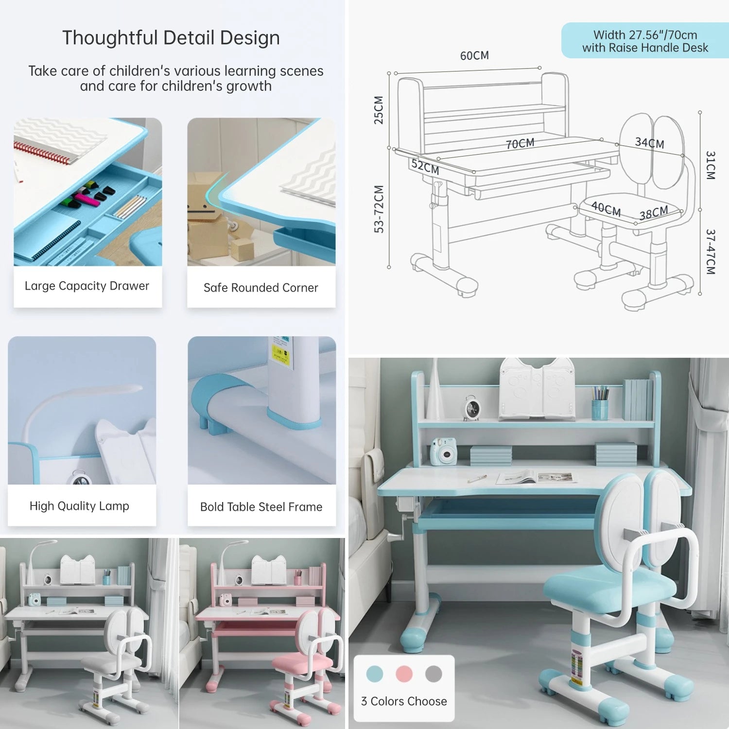 Accompany your child's growth by adjusting the optimal height of the desk and chair. Suitable for ages 2-16. Keep your child in the correct sitting posture to support and protect their spine. Sitting for long periods without getting tired makes learning easy and fun.
