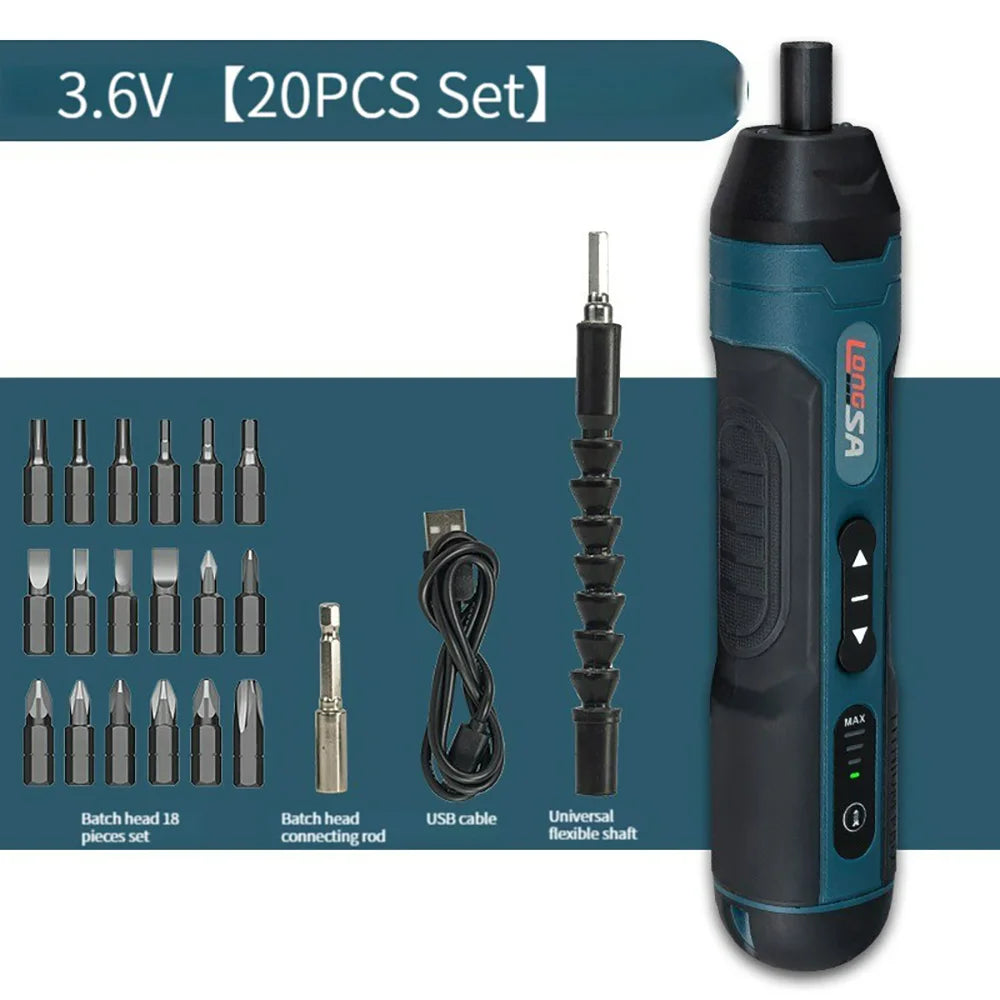 LONGSA Blue-Black-Red Rechargeable Built-In Flashlight LED Lights Manuel-Automatic Adjustable Six-Steps Torque Electric Screwdrivers/USB Port/Lithium Battery
