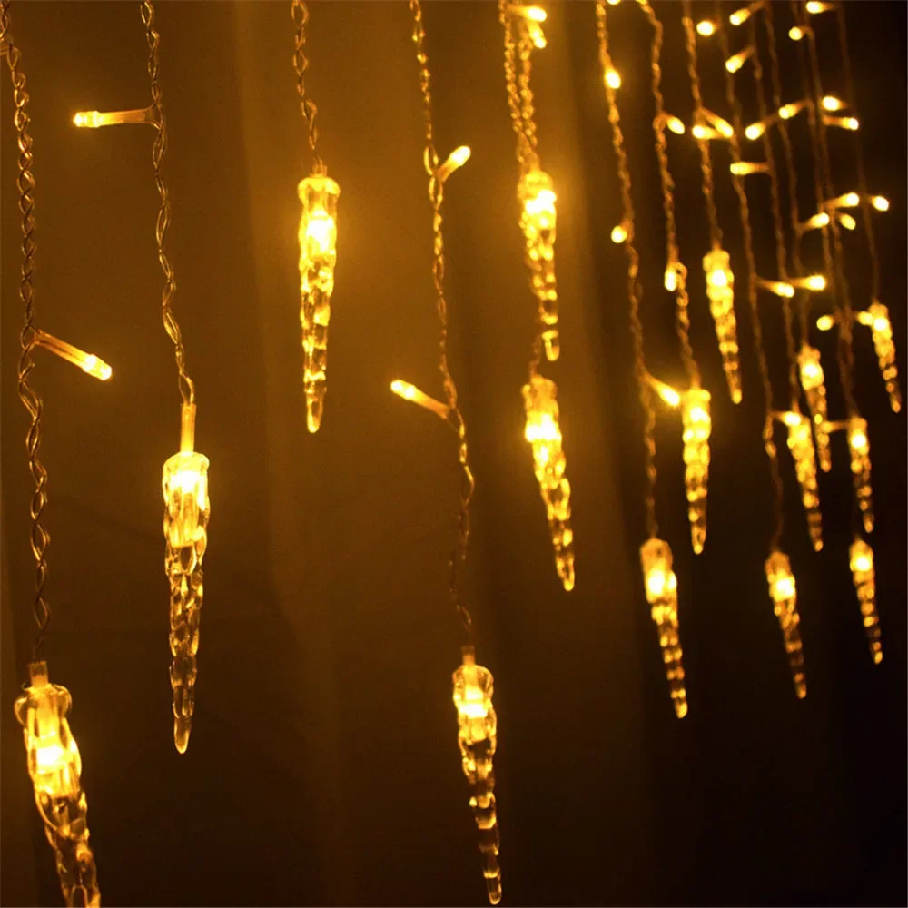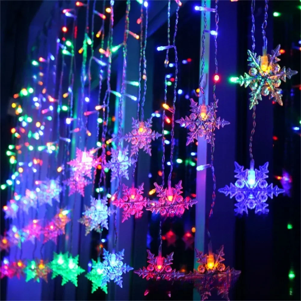 LOUCUNGAN Outdoor-Indoor Warm White LED Lights Christmas Ice Icicle-Snowflakes Curtain Design Light Ropes-Strings/Colors-Multicolor/White/Purple/Yellow