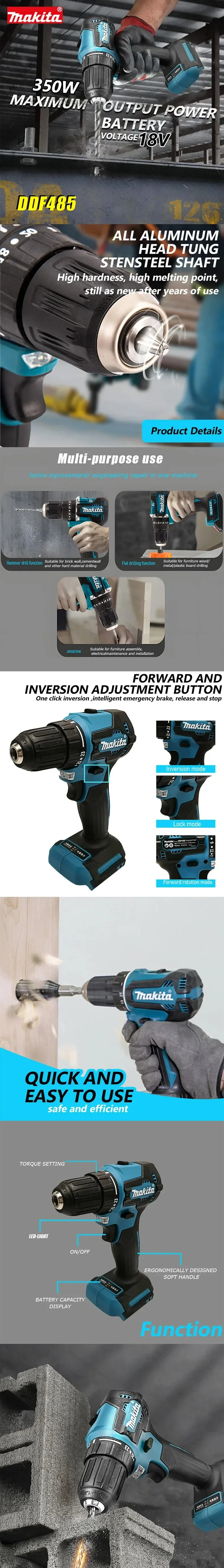 MAKITA 18V Outdoor Maximum Output Cordless Brushless Black-Blue Body Battery-Powered Rechargeable Soft Rubber Covered Pistol Handle All Aluminum Head Tung Steel Shaft Electric Power Driver Drills