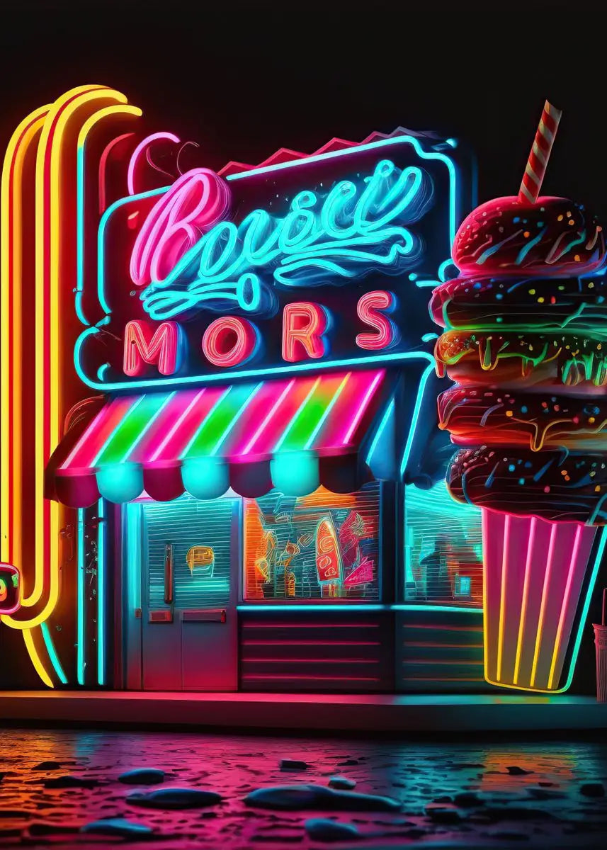 NULL Modern Waterproof Non-Fading Rectangle Shaped Unframed No White Border Printed Cotton Canvas Cartoon Neon Fast Food-Soft Drinks Wall Prints/Colors-White/Blue/Multicolor