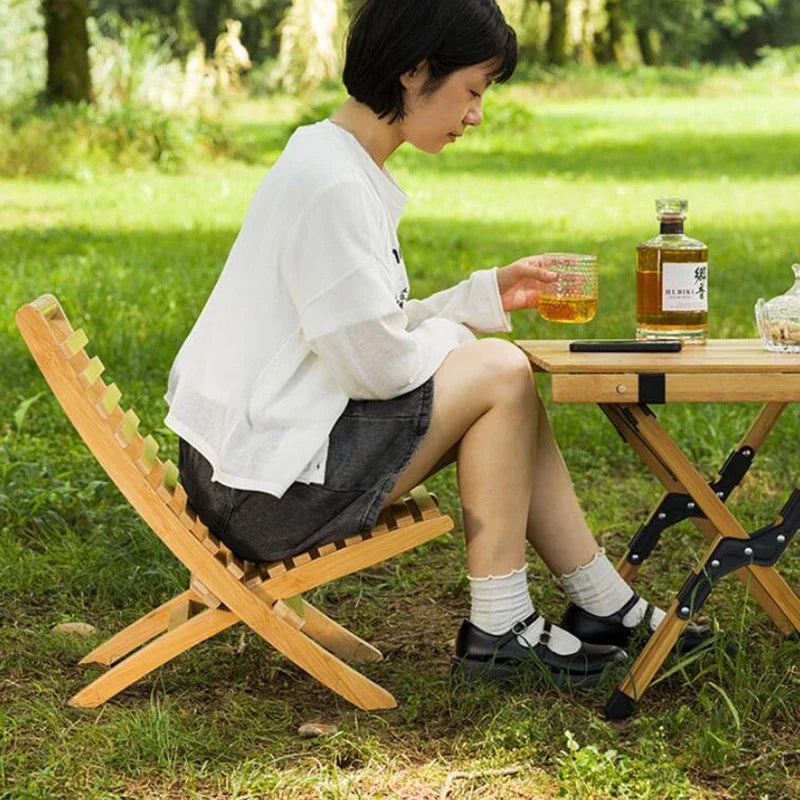 ZJMZYM Outdoor Modern Armless Hard Brown Bamboo Wood Backrest-Seat Folding Lounge Chairs/Colors-Brown/Beige