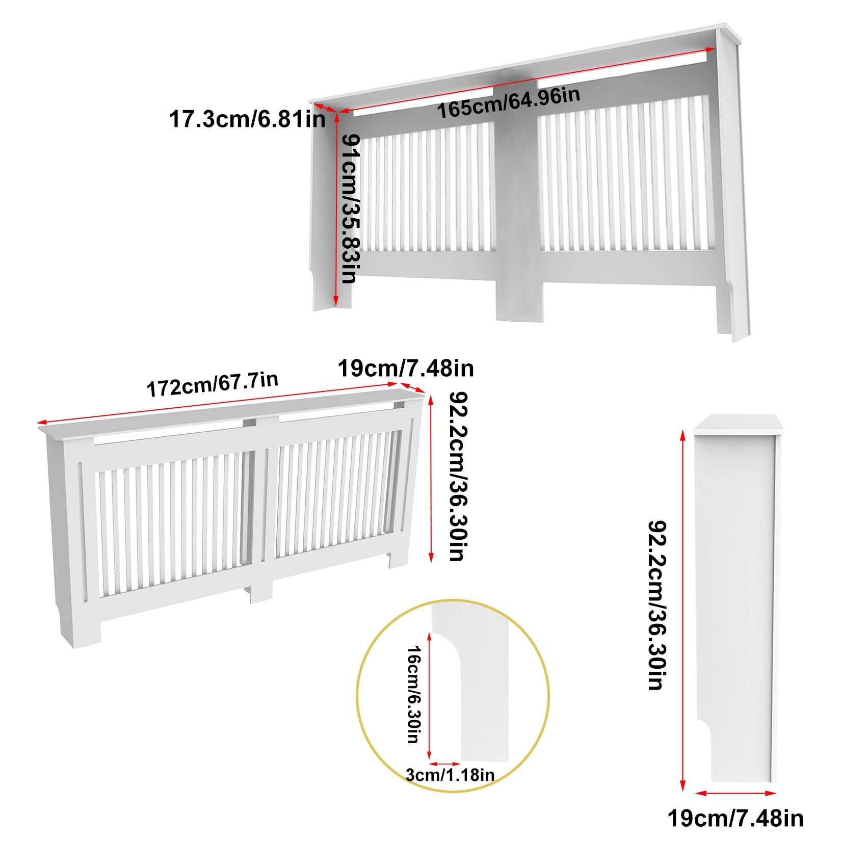WISFOR Modern White Wood Vented Heating Radiator Cover Cabinets Accessories / Sizes: S-XL/Instruction Manual / 1-Screw Accessory