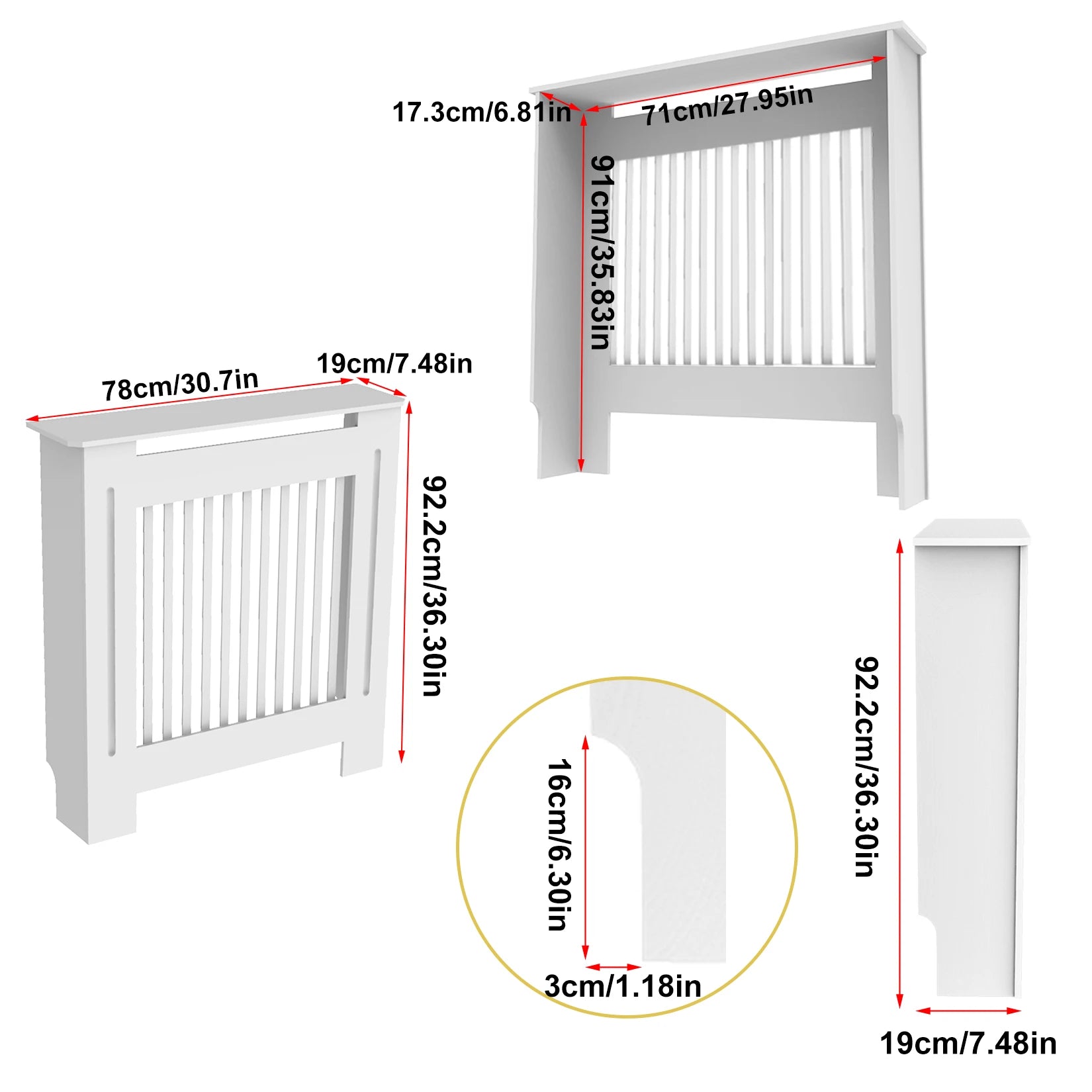 WISFOR Modern White Wood Vented Heating Radiator Cover Cabinets Accessories / Sizes: S-XL/Instruction Manual / 1-Screw Accessory