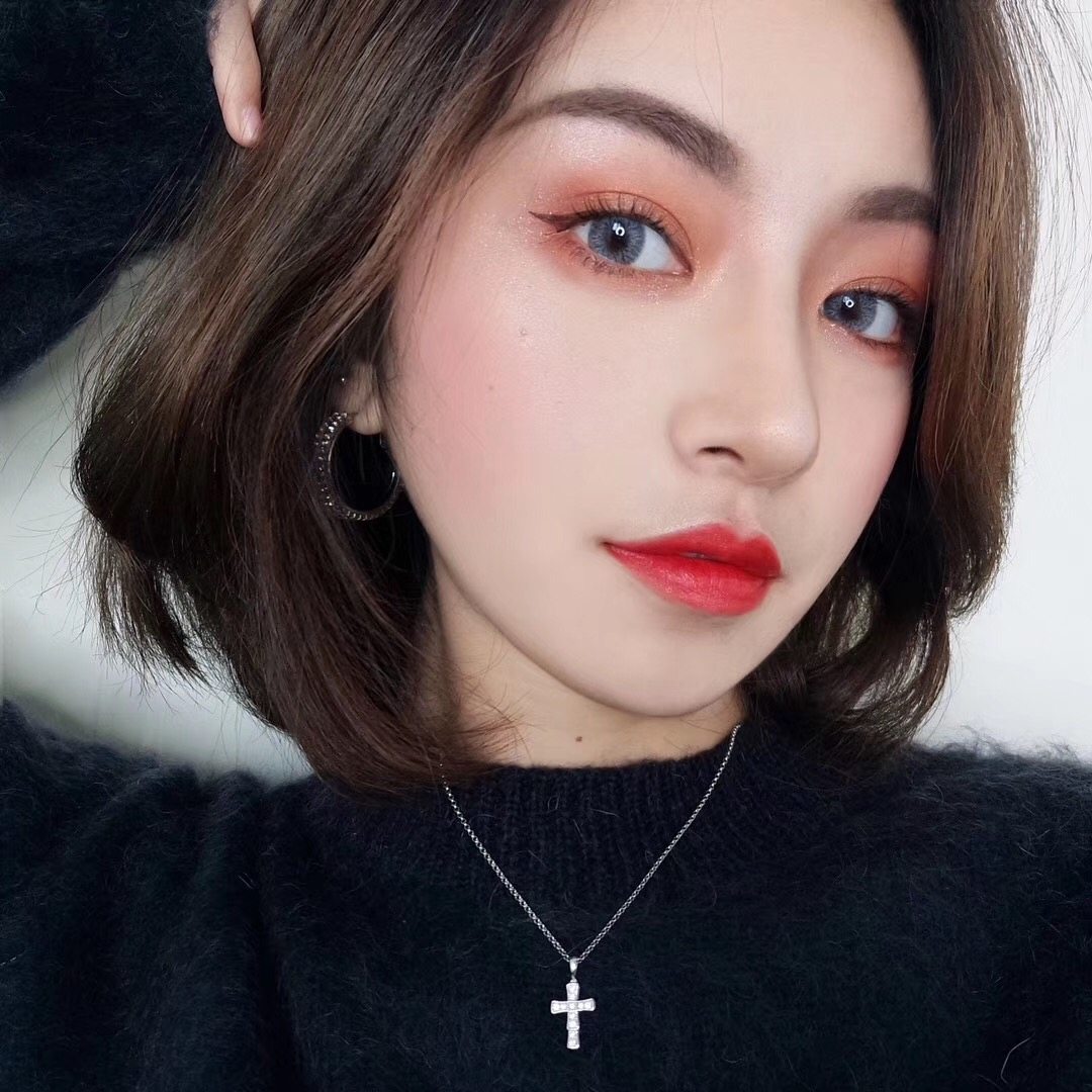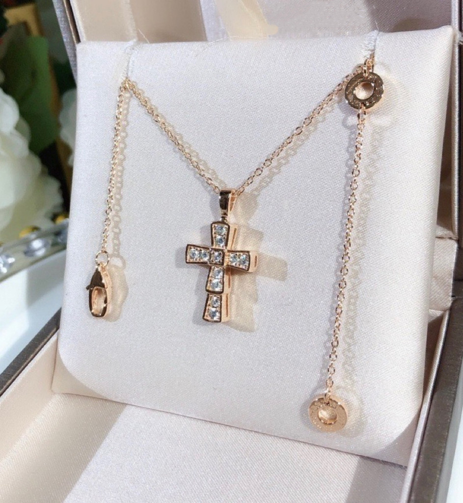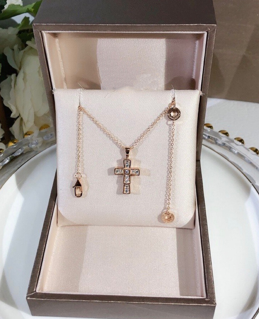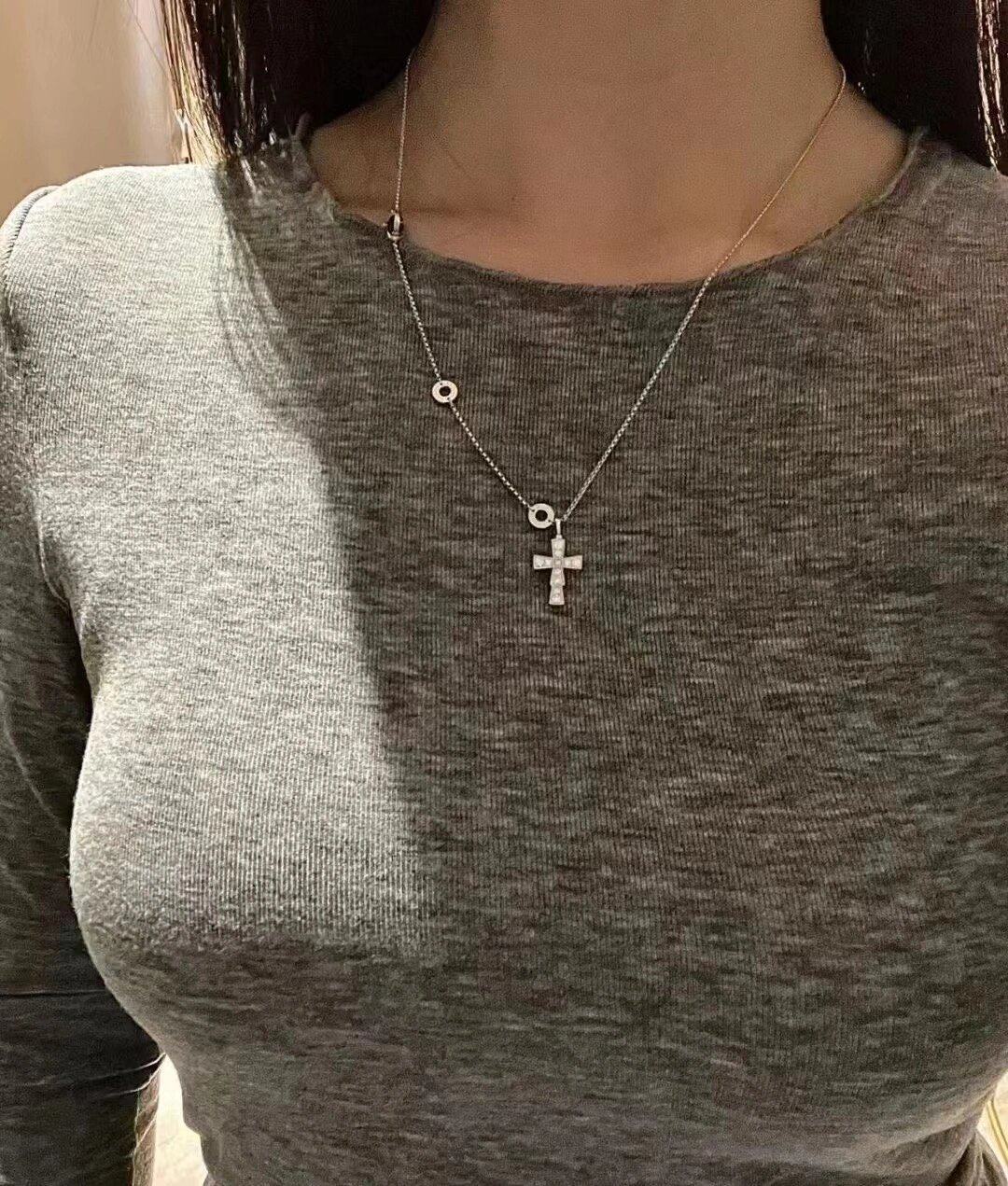SHANG MEI PLATINUM Adult Unisex Fine Imitation Alloy Metal Silver-Gold-Plated Inlaid 18K Gold Clear White Shiny Full Diamond Gemstones Mini Cross Pendant Clavicle Chain Necklaces