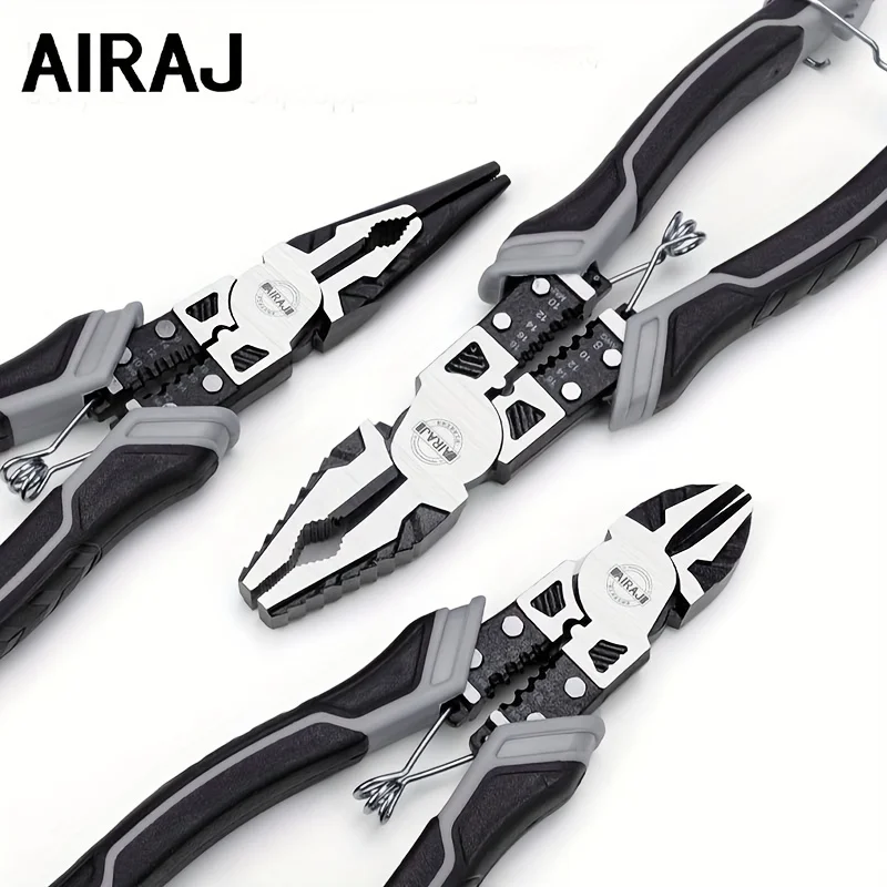 3 PCS Set AIRAJ DIY Electrical Straight Plastic Black-Gray-White Coated Handle Silver Chrome-Plated Steel-9 Inch Steel Wire Cutter-9 Inch Pointed Needle Nose-8 Inch Diagonal Cutting Pliers