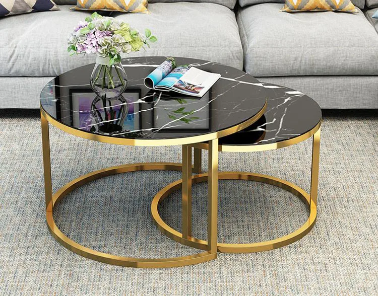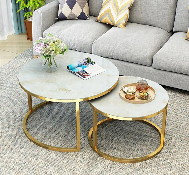Luxury Tempered Glass Round Coffee Table for Living Room 2 in 1 Combination Cafe Table Easy Assembly Center Table
