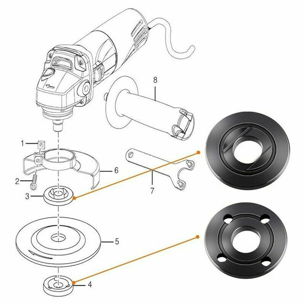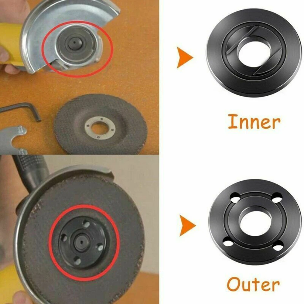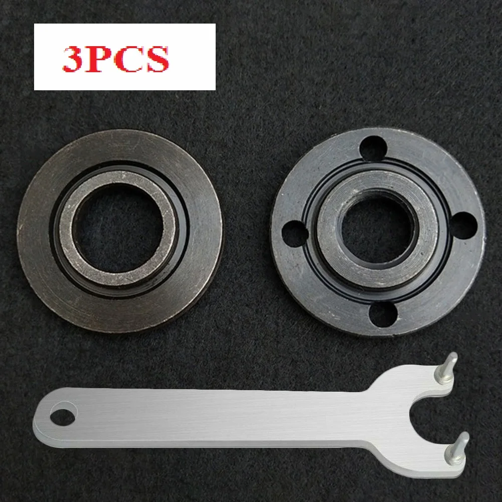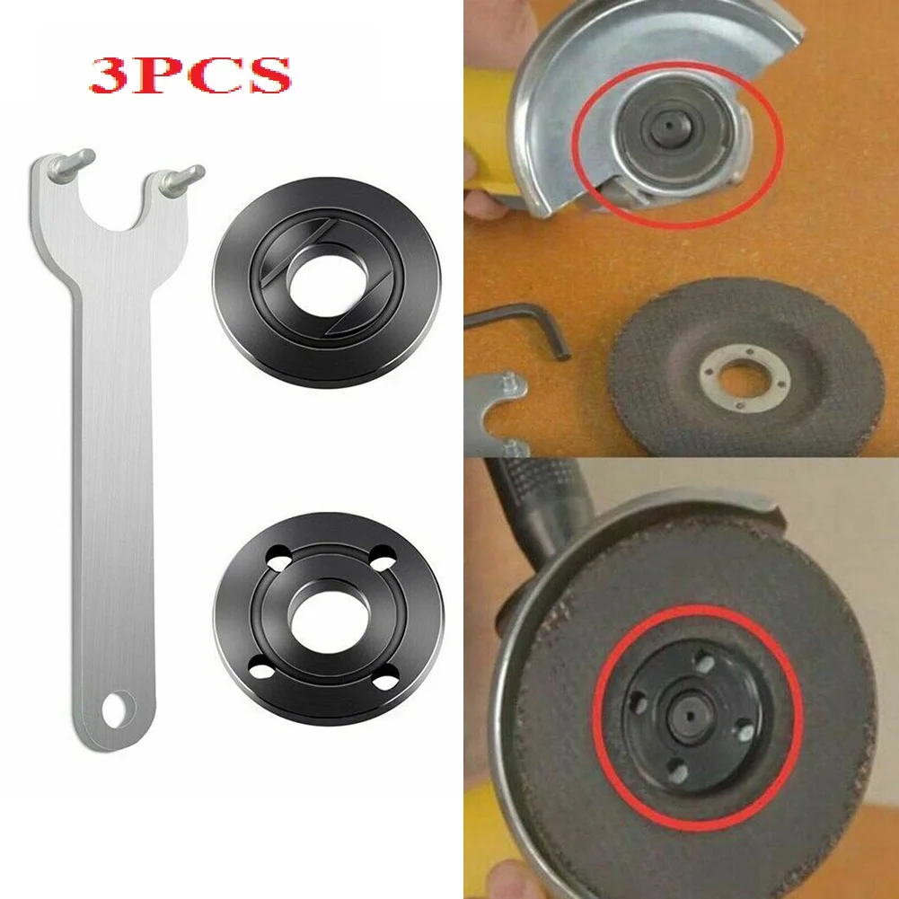 3 PCS Round Black Metal Pressure Plate Angle Grinder Inner-Outer Flange Nut Sets/1 Silver Wrench/Colors-Black/Silver/Gray