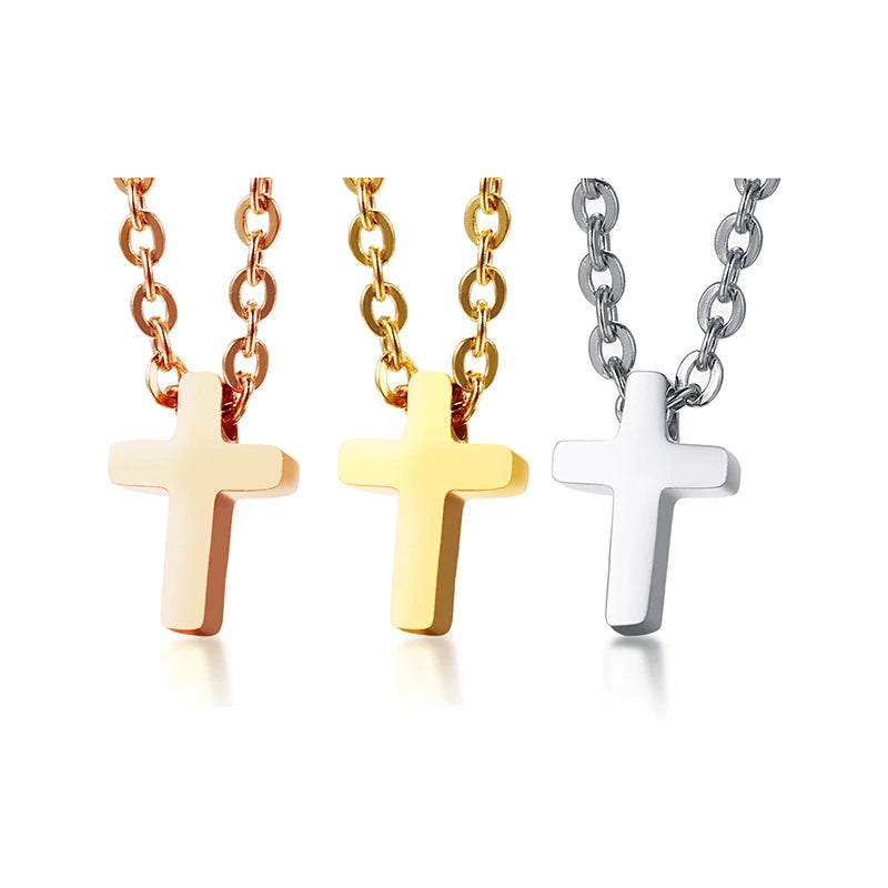 MEAEGUET Women Fine Imitation Tiny Dainty Sideway Cross Pendant Stainless Steel Three-Layer Gold-Plated Link Large Choker Chain Necklaces/Colors-Rose Gold/Gold/Silver