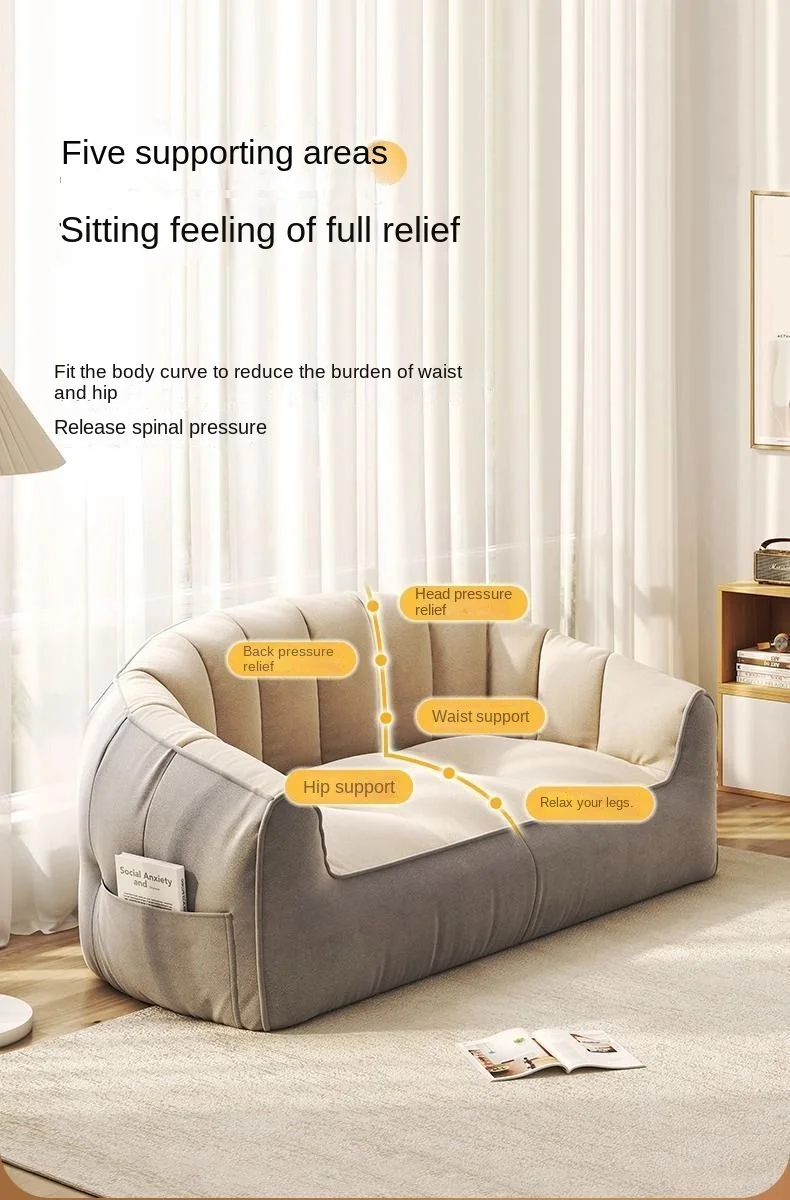 ZISIZ Modern White-Dark Gray Q-Bomb 3D Rebound Uniform Support Upholstered Padded Soft Fluffy Snow Velvet Fabric Removable Washable Lazy Lightweight Double Seats Side Pocket Bean Bag Chair Sofas/Colors-Gray/Beige/White/Striped/Yellow/Geometric