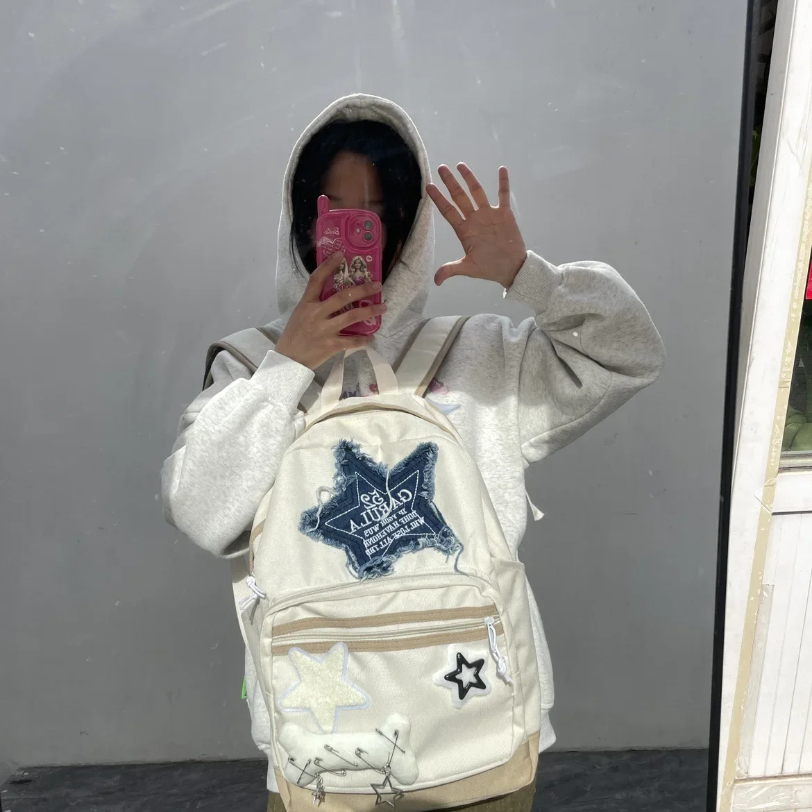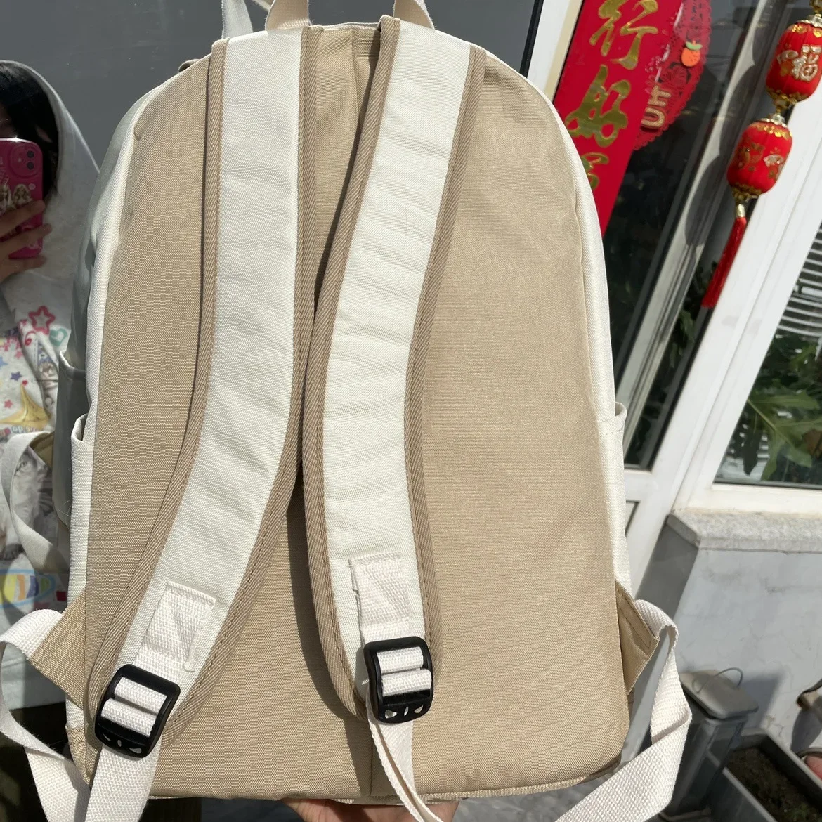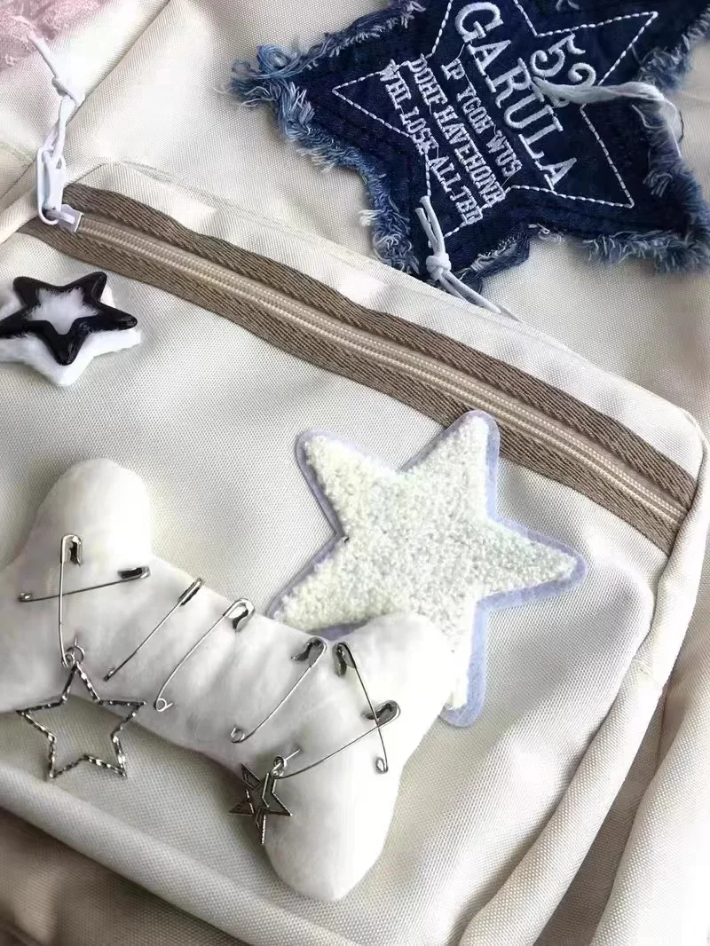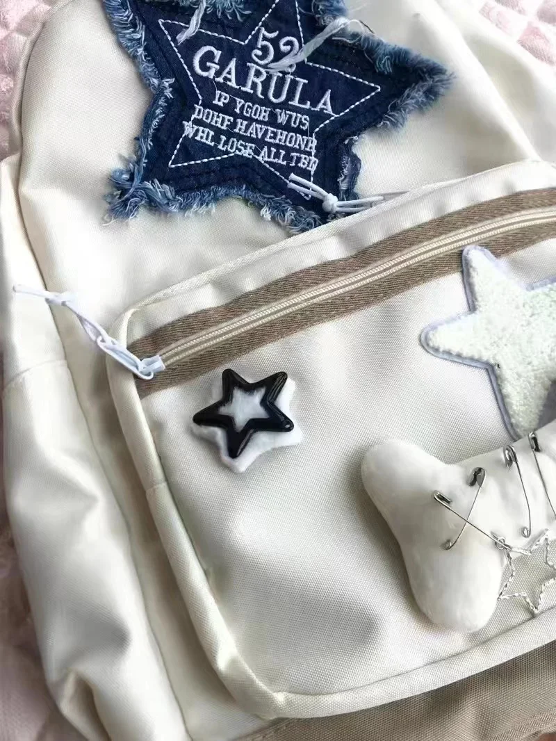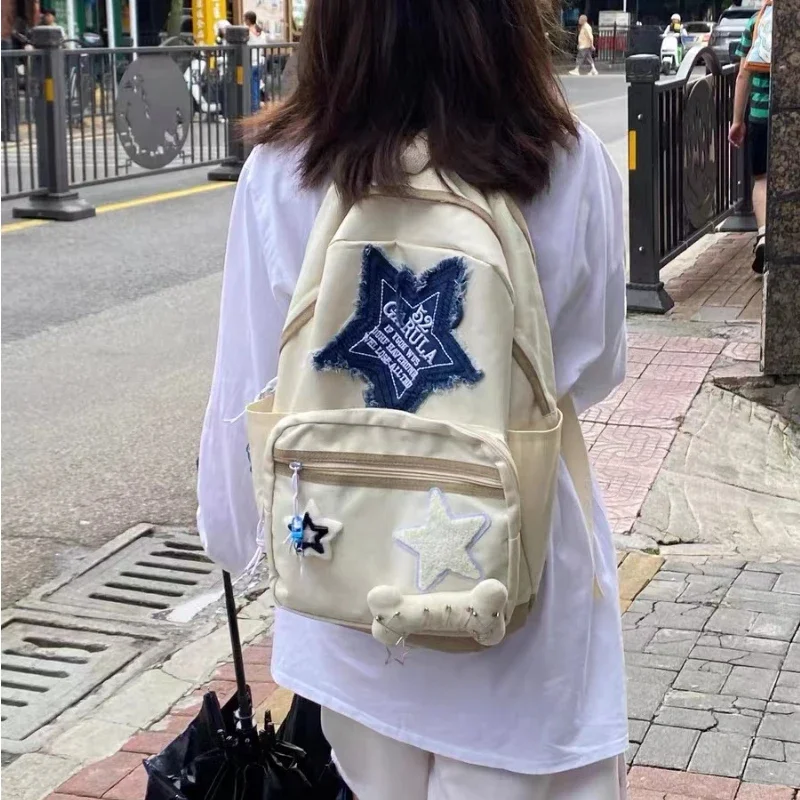 Women Waterproof Lightweight White Nylon Fabric Blue Star Korean Kawaii Design Metal Zipper Multi-Pockets Polyester Lining Two Shoulder Straps-Handles School Backpacks/14 Inch Built-In Laptop Pocket/Colors-Geometric/Beige/Pink/Green/White